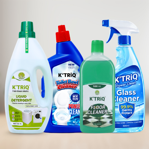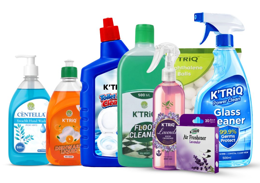 Floor cleaners, glass cleaners, toilet bowl cleaners, liquid detergents, and more.